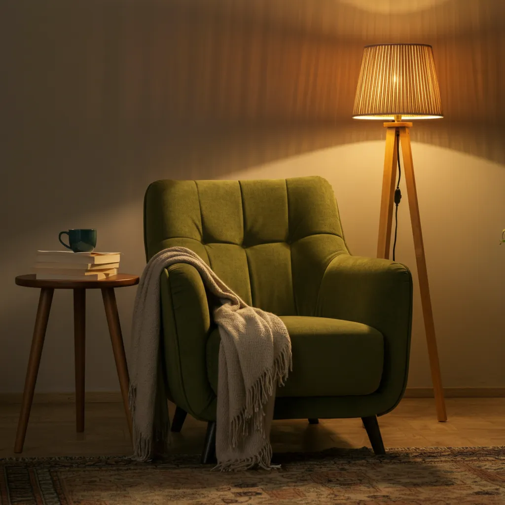 A single olive green armchair tucked into a reading nook or placed in the corner of your living room adds a sophisticated touch of color and extra seating.