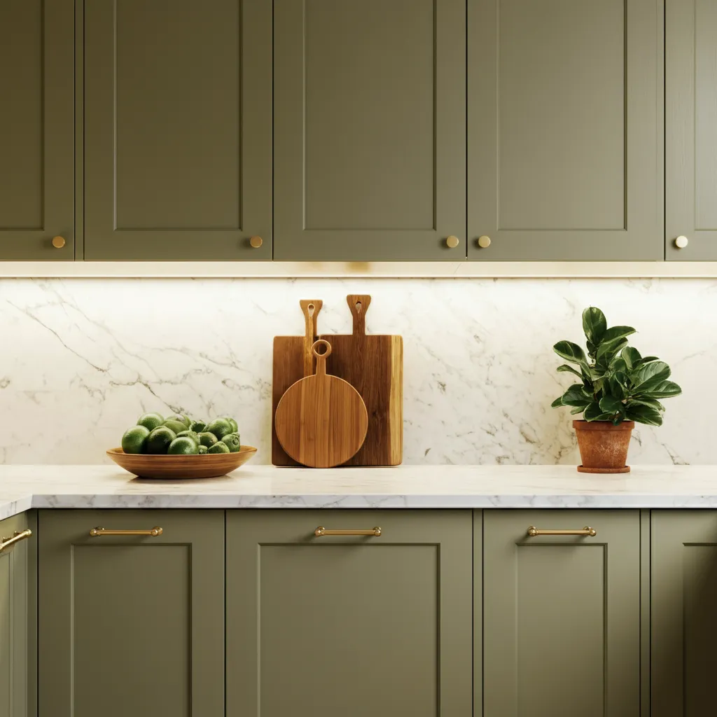 Upgrade your kitchen or a living room sideboard with olive green cabinets. This adds a touch of modern elegance and a pop of color to a functional space.