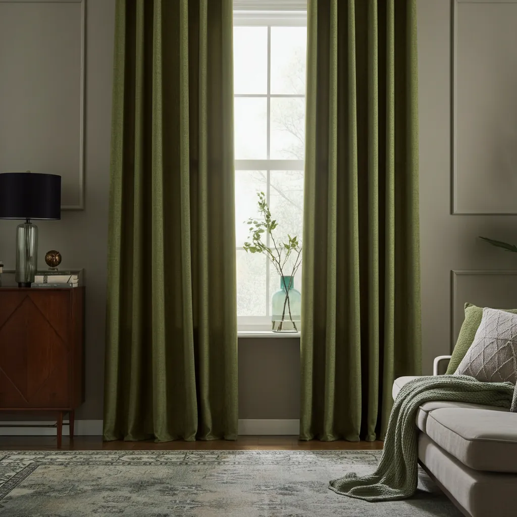 Frame your windows with floor-to-ceiling olive green curtains. They can add drama, provide privacy, and make a room feel taller and more elegant.