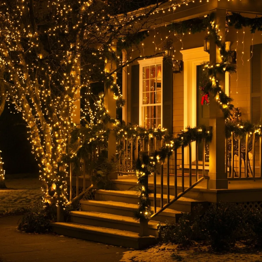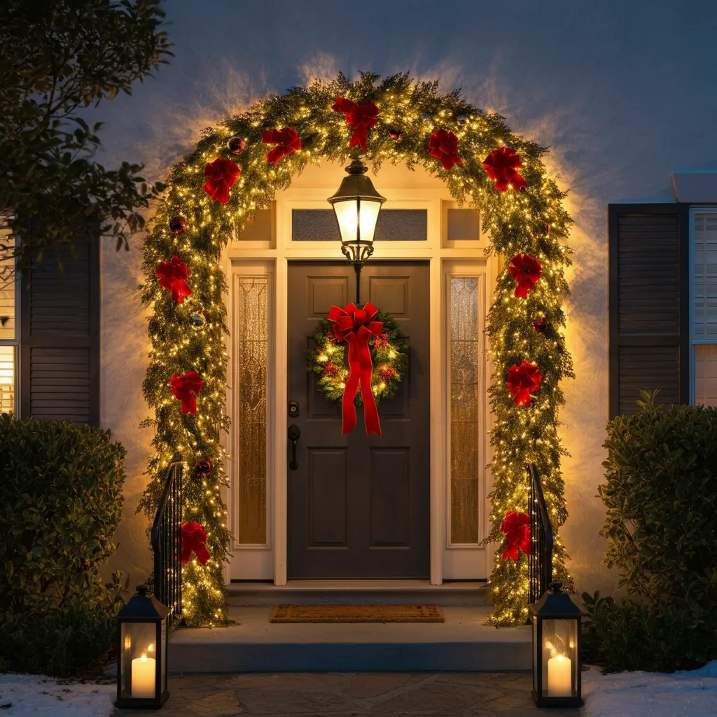 Create an archway of greenery and lights over your front door or walkway. This makes a grand entrance for guests.