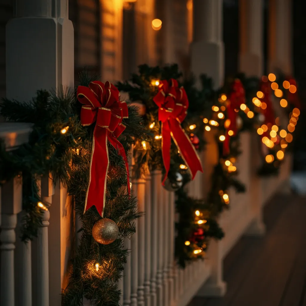 Drape garlands along your porch railings or balcony. Add bows, lights, or ornaments for extra flair.