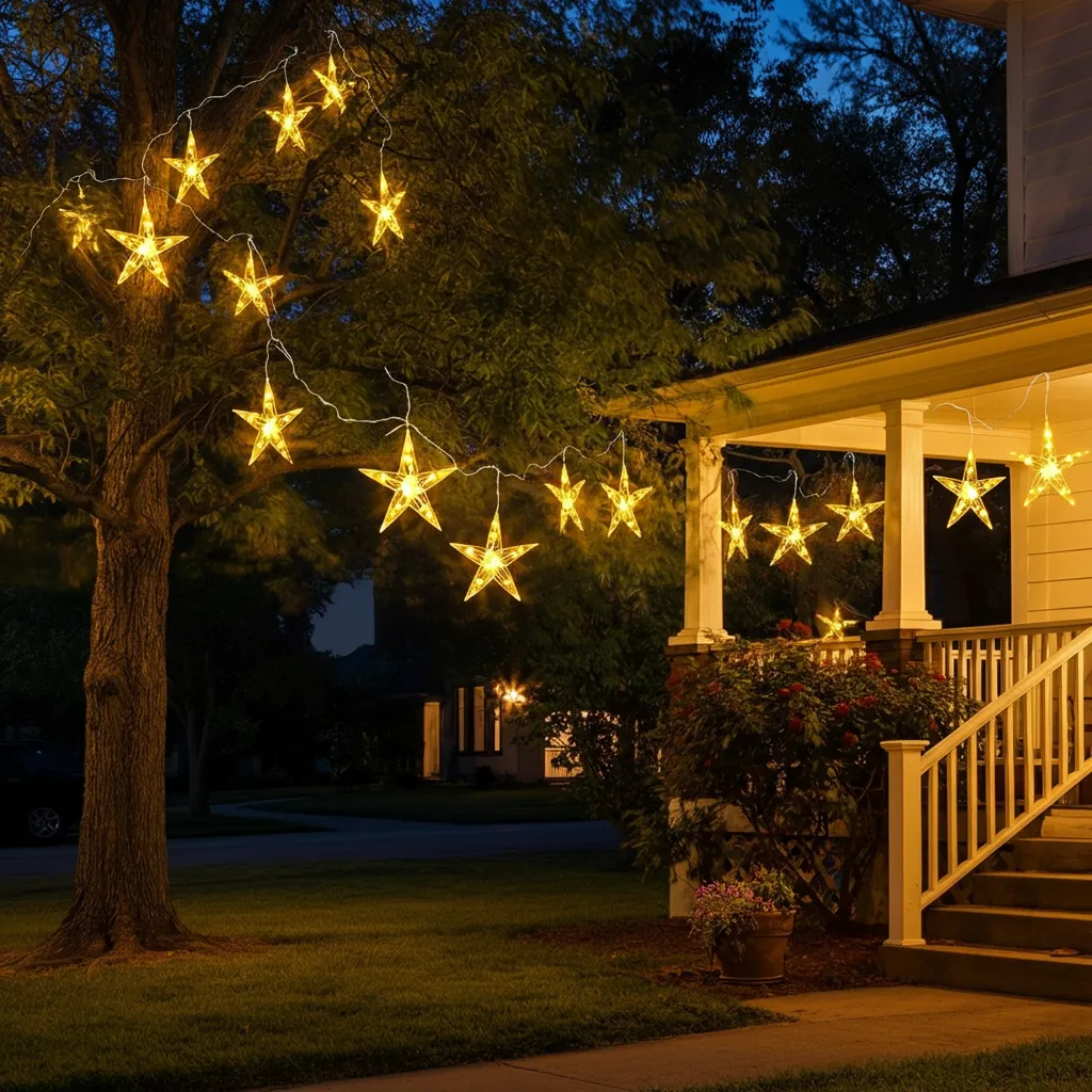 Suspend lighted stars from trees or your porch ceiling. These create a celestial effect that’s both unique and beautiful.
