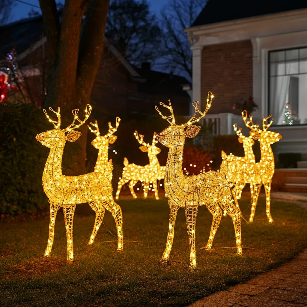 Place lighted reindeer figures in your yard for a classic holiday look. Add a sleigh for a complete scene.