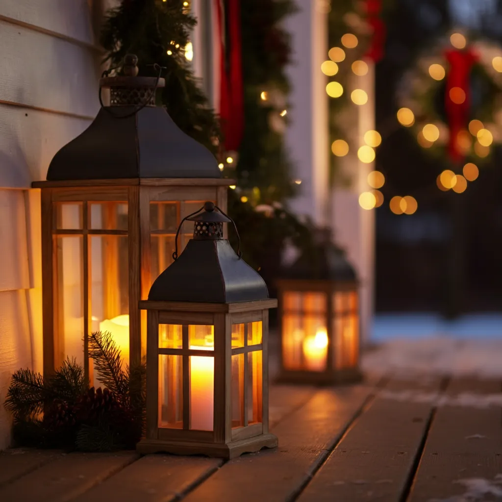 Place rustic lanterns filled with candles or lights on your porch or steps. These add a warm and inviting glow.