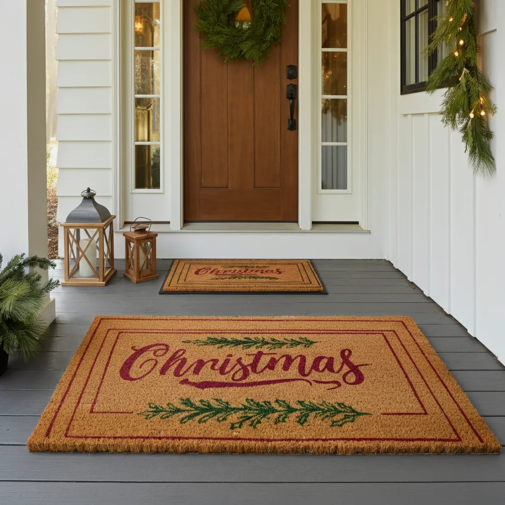 Welcome guests with a holiday-themed doormat. Pair it with a layered rug for extra style.