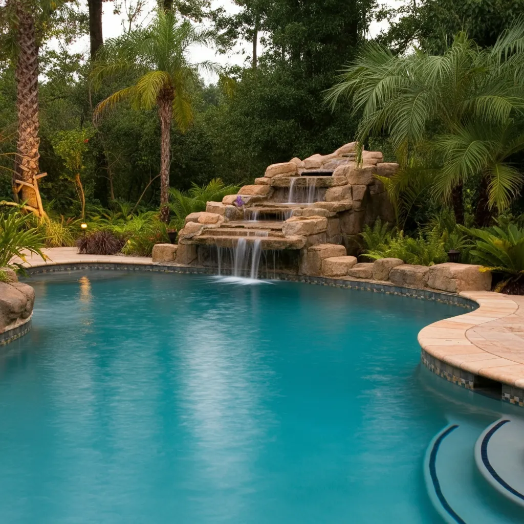 Popular trends include geometric shapes, natural lagoon-style pools, infinity edges, integrated spas, and creative tile patterns. Features like tanning ledges, waterfalls, and built-in seating add both style and functionality.