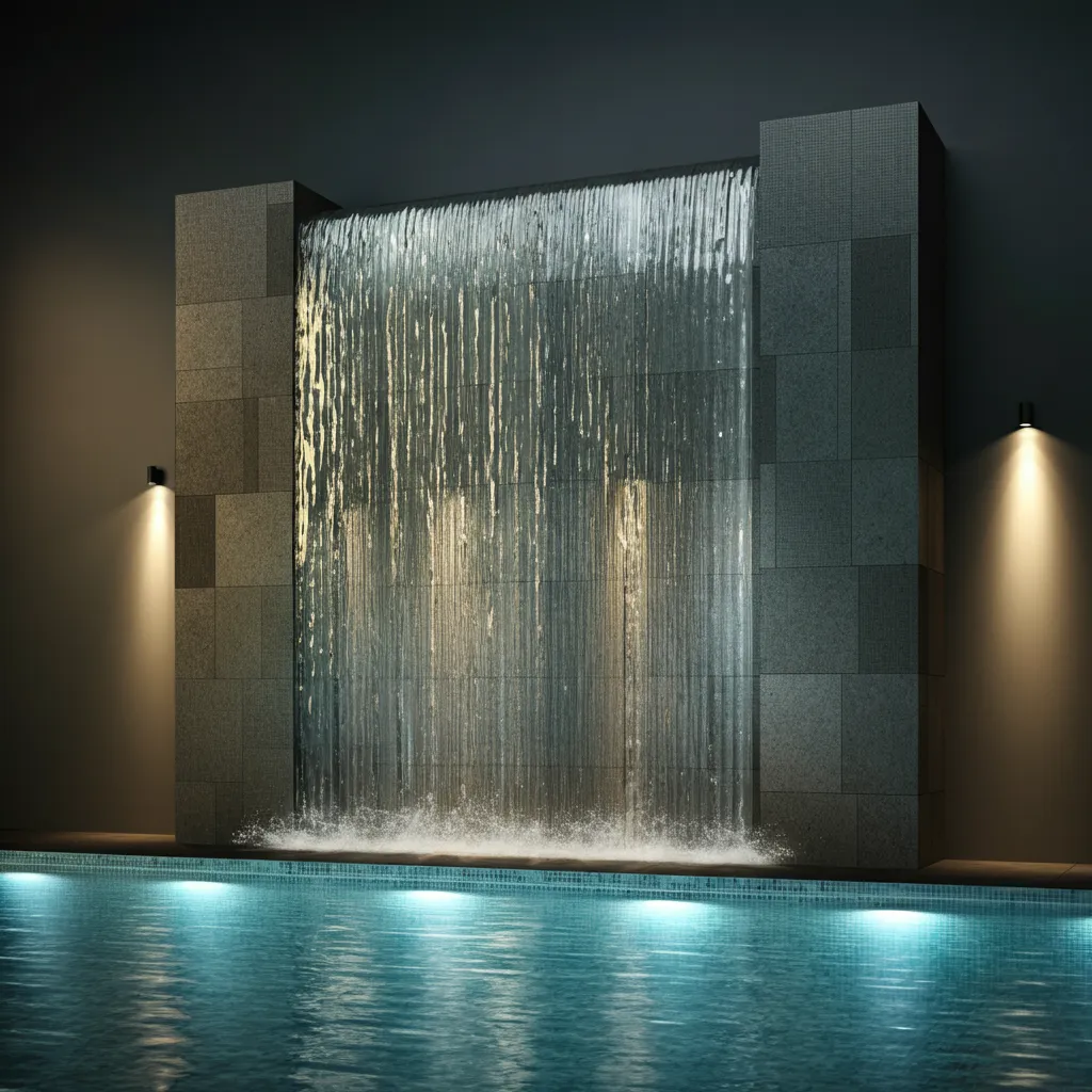 A sheer descent waterfall or a bubbling water wall adds the soothing sound of moving water to your backyard. This feature can be a simple, elegant wall of tile or a more rustic stone facade, adding a dynamic element to your pool area.