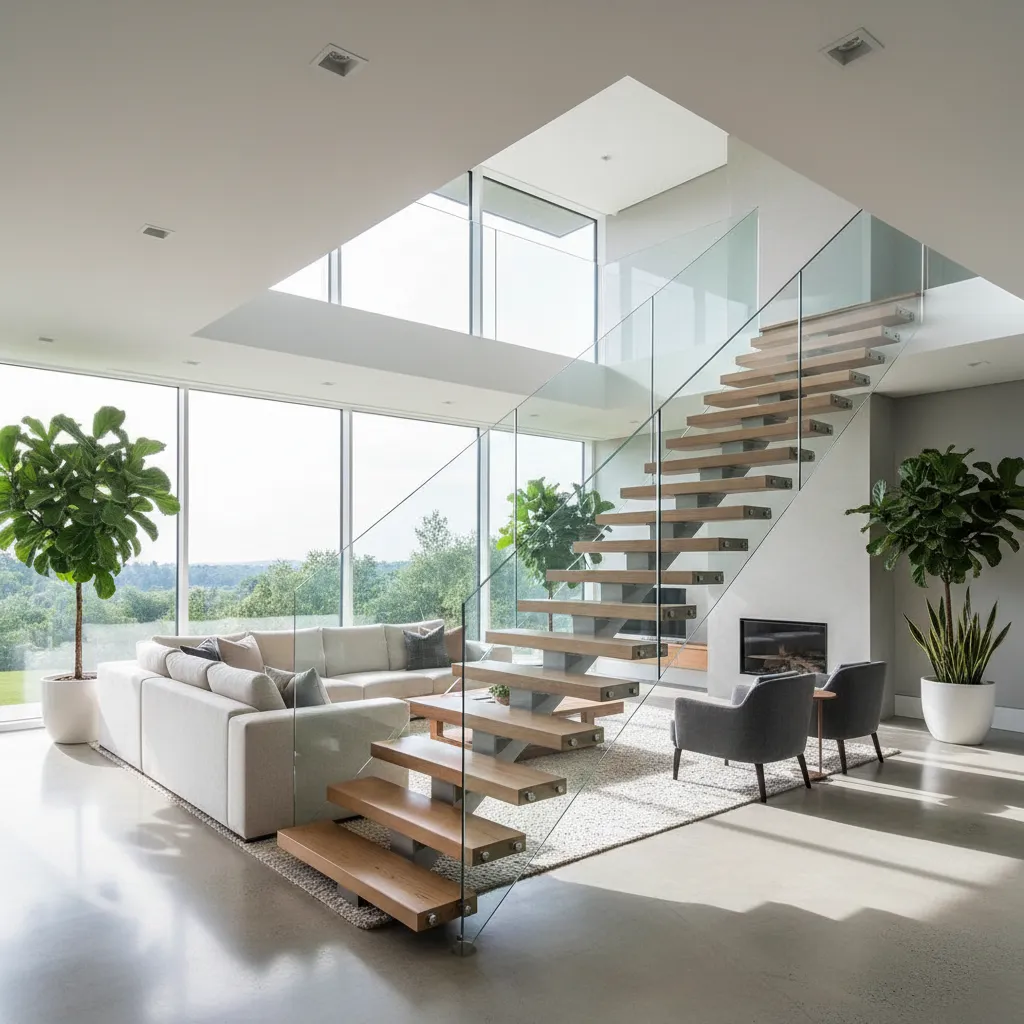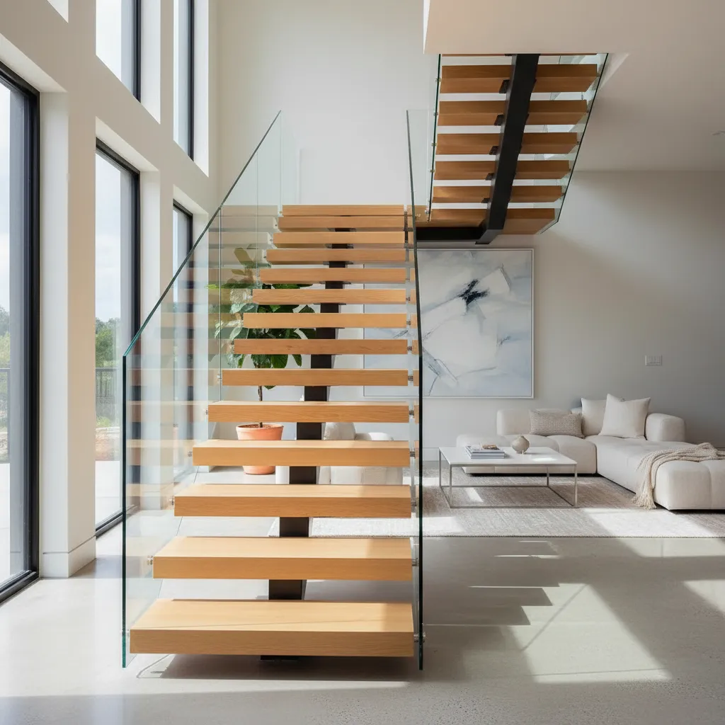This design is perfect for maximizing light and making a small space feel larger. Paired with a glass railing or simple metal handrail, floating stairs become a sculptural work of art.