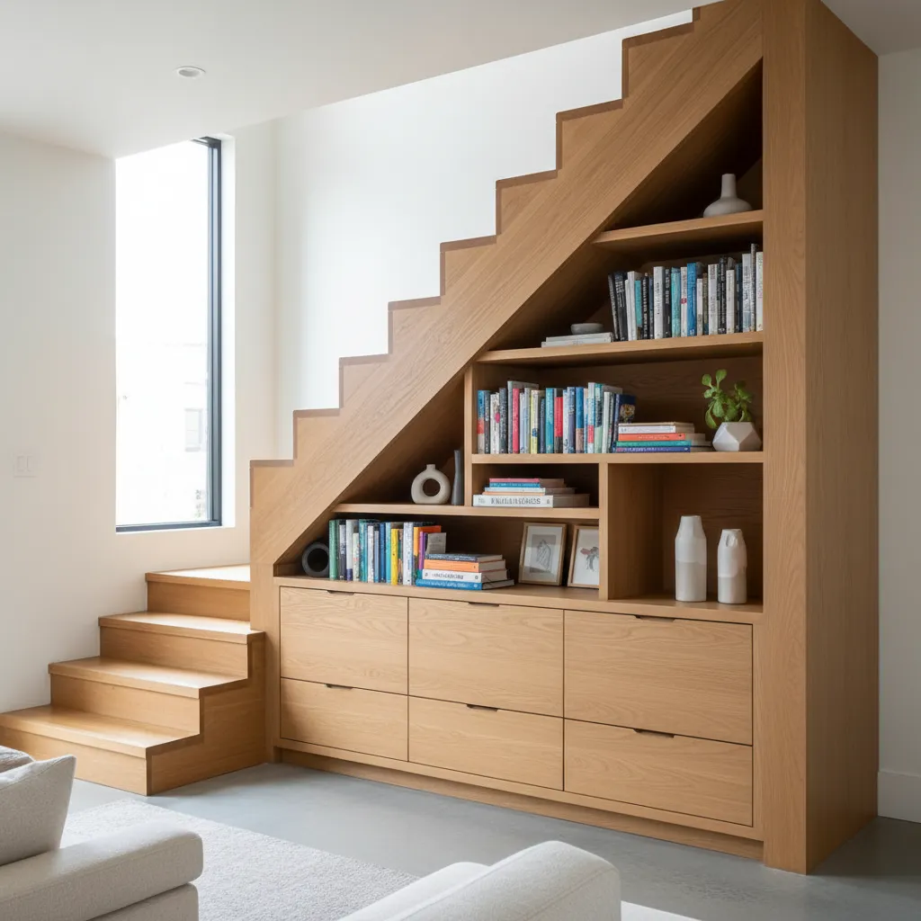 Make your staircase work harder by incorporating clever storage solutions. The space under the stairs is often underutilized. Transform it with built-in drawers, shelves, or even a small reading nook.