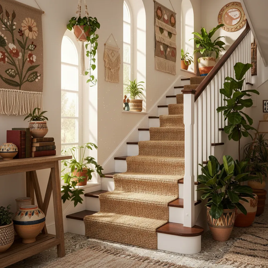 Complement a rustic or bohemian home with a runner made from natural fibers like jute or sisal. These materials are incredibly durable and bring an earthy, organic texture to your staircase.