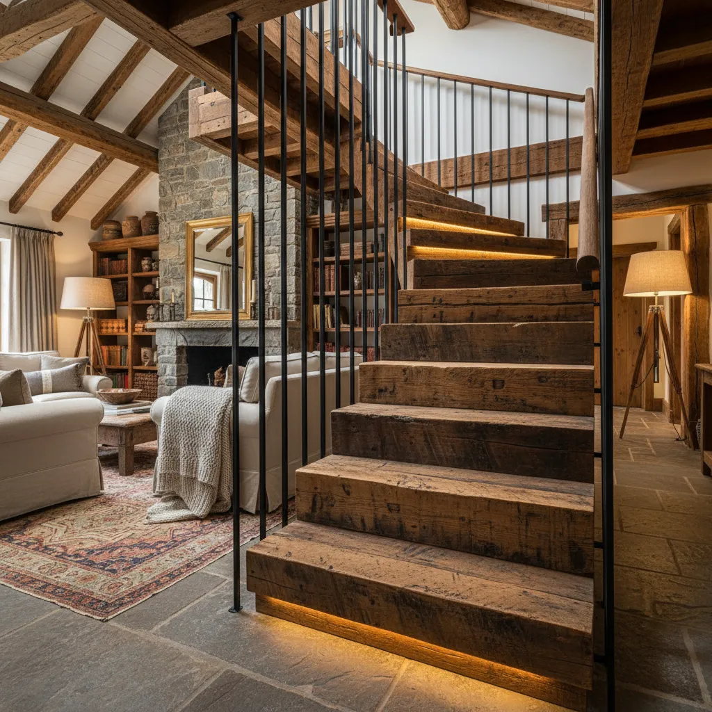 Swap out standard treads for reclaimed wood to add instant character and history. The natural imperfections, knots, and grain variations of reclaimed wood tell a story and bring a unique warmth to your staircase.