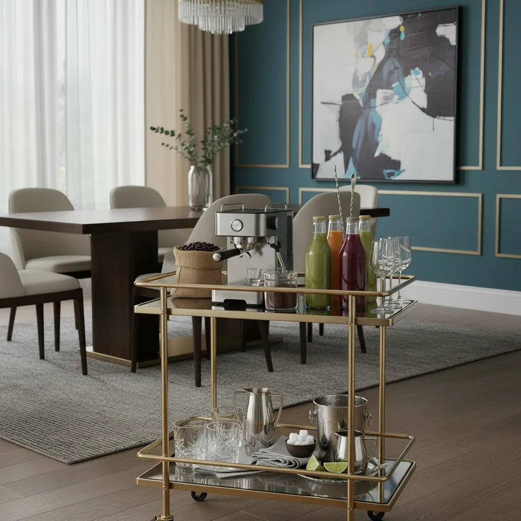 A cart is both functional and fashionable. Stock a sleek metal or wood cart with your favorite spirits, elegant glassware, and cocktail-making tools. It adds a touch of sophistication and is always ready for entertaining.