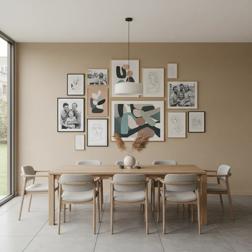 A gallery wall adds immense personality. Combine a mix of abstract art, family photos in modern frames, and line drawings. Stick to a cohesive color palette for the frames, such as all black, white, or natural wood, to maintain a unified look.