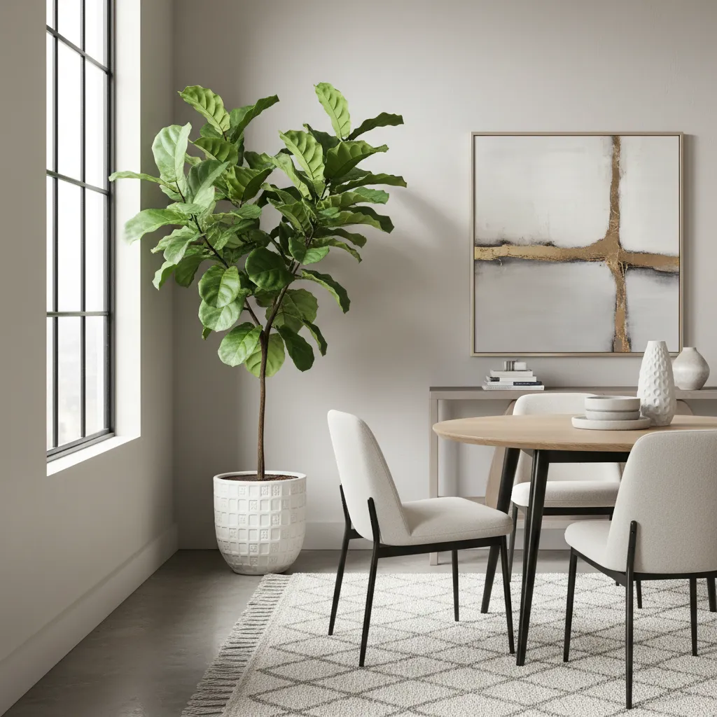 Plants breathe life into any room. A large fiddle leaf fig in a corner or a collection of smaller succulents on a shelf can add a touch of nature. They purify the air and bring a sense of calm to your dining space.