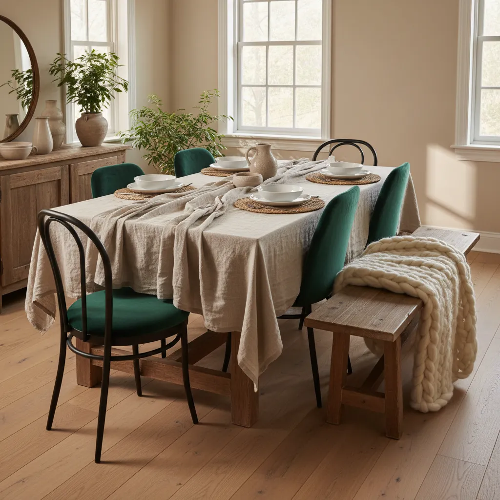 Texture adds depth and coziness. Think about linen tablecloths, velvet chair cushions, woven placemats, or a chunky knit throw draped over a bench. These tactile elements make the space feel more inviting.
