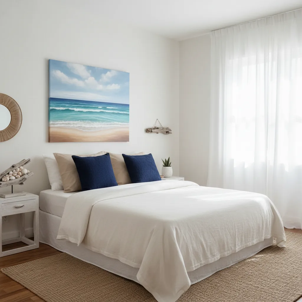 You don’t need to repaint your entire room. Introduce these colors through accent pieces like throw pillows, artwork, or a new area rug. A few seafoam green or navy blue cushions on a neutral bed can completely change the room’s vibe. These colors evoke a sense of calm and bring the freshness of the ocean indoors. If you’re looking for more inspiration on wall treatments, consider exploring some modern Bedroom Wall Decor Ideas.