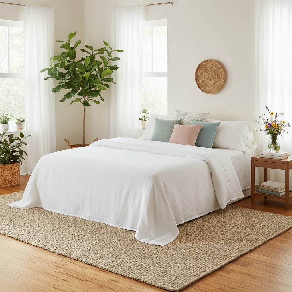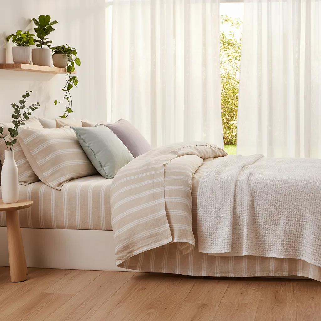One of the most impactful changes for a summer bedroom is swapping out heavy winter bedding. Ditch the flannel sheets and thick duvets for lighter, more breathable options.