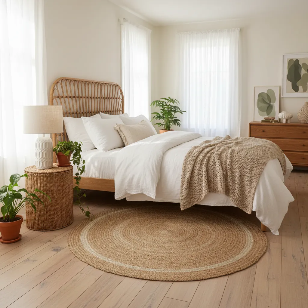 Think rattan, jute, and wicker. A jute rug can ground the space and add a dose of rustic charm. A rattan headboard or a wicker side table can serve as a beautiful statement piece. Even small touches, like woven storage baskets or a seagrass lampshade, can contribute to the overall aesthetic.