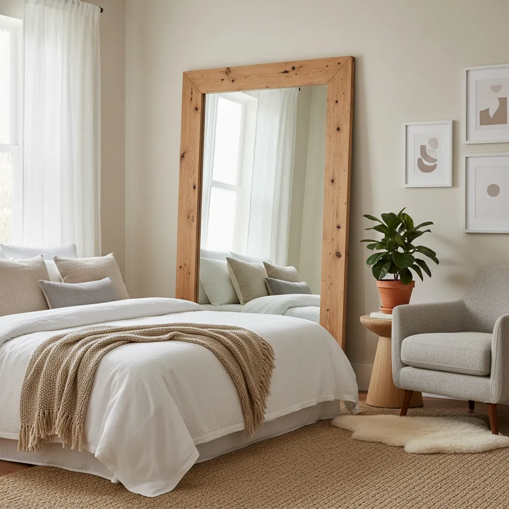 Mirrors are a decorator’s secret weapon. They reflect light, making a room feel brighter and more expansive. A large floor mirror leaning against a wall or a decorative mirror hung above a dresser can create a beautiful focal point. Look for mirrors with interesting frames, such as sunburst designs or frames made of natural wood or rattan.