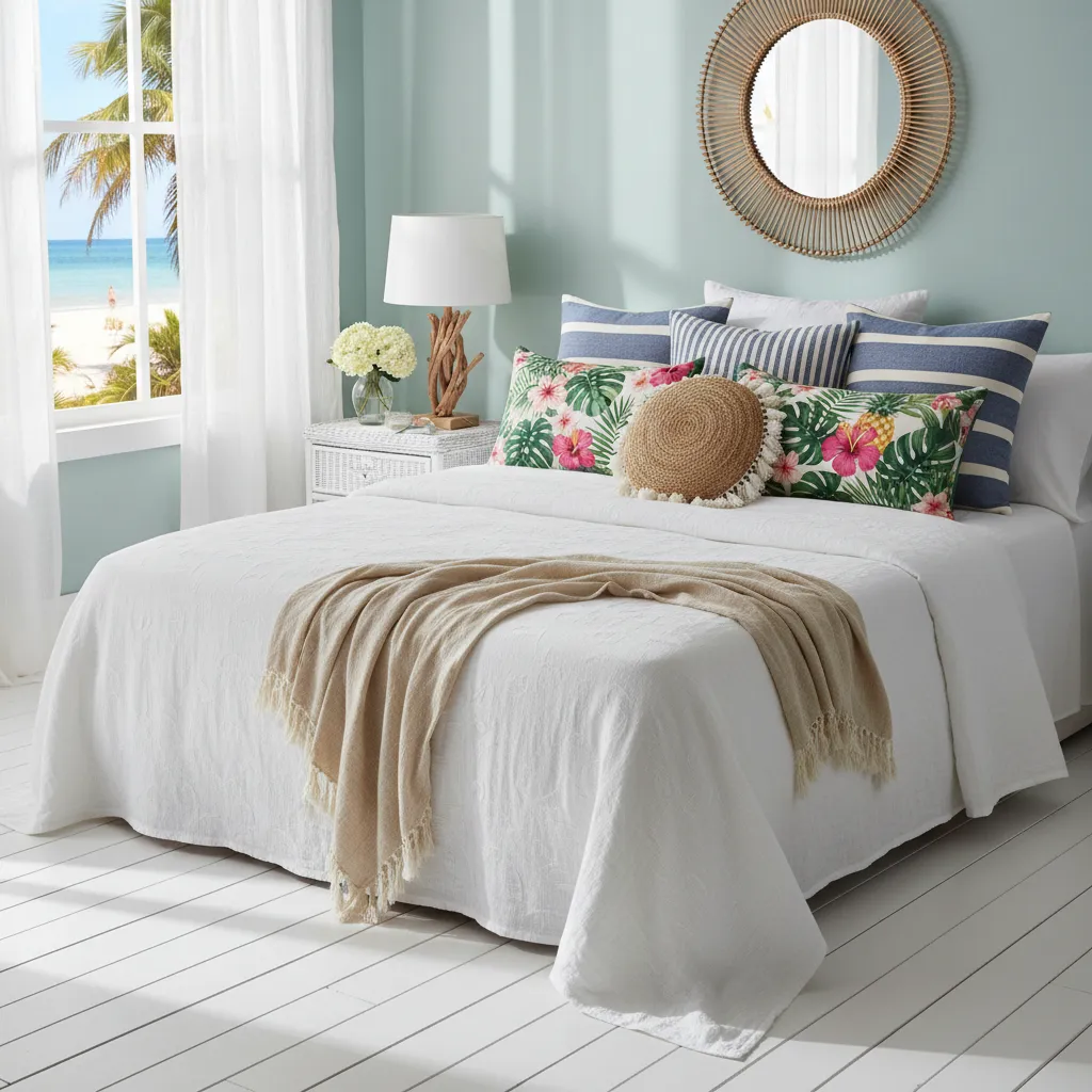 Even in summer, nights can get cool. Instead of one heavy blanket, opt for light layers. A thin cotton quilt or a lightweight throw at the foot of the bed provides just enough warmth and adds a touch of texture and color.