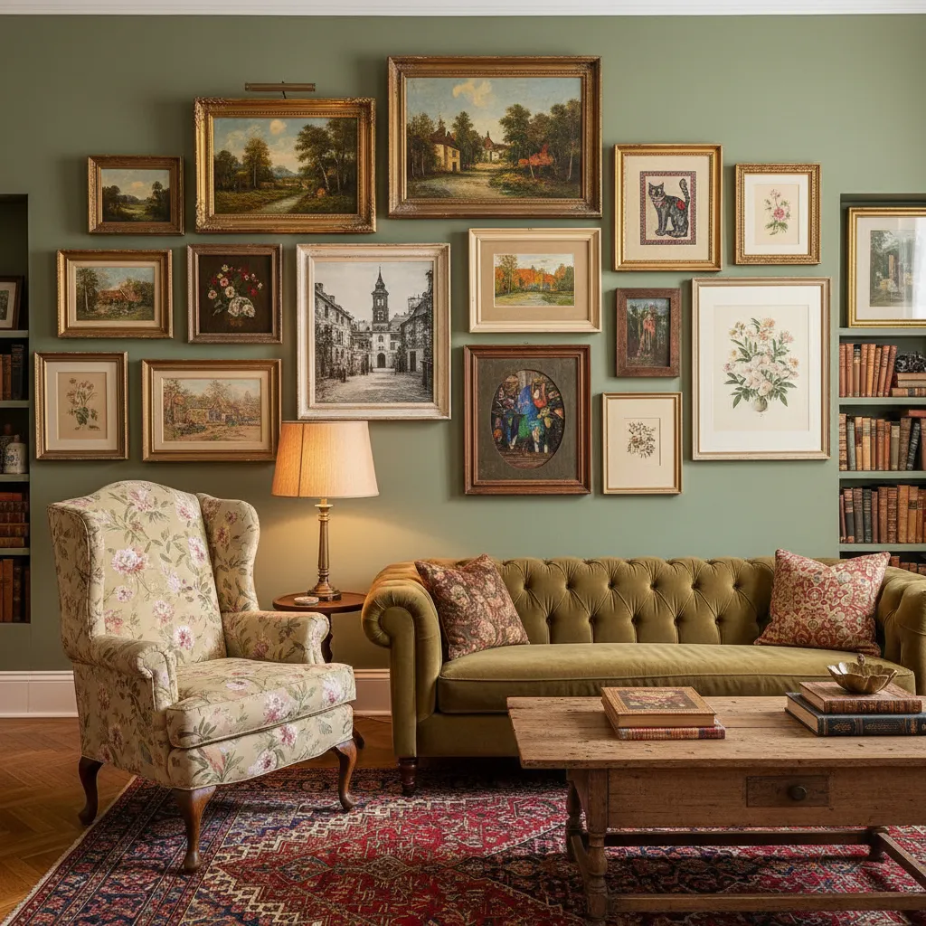 Scour thrift stores and flea markets for vintage paintings, prints, and even framed needlepoints. Group them together to create a gallery wall. Mixing different frame styles and sizes adds to the eclectic, collected charm.