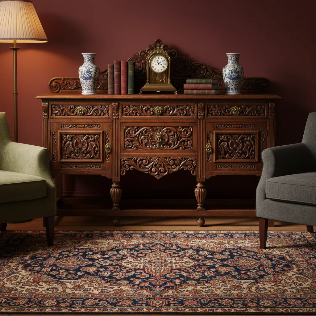 A well-worn Persian or Oriental rug underfoot is a hallmark of vintage style. Its intricate patterns and rich colors can tie the entire room together. Look for one with a bit of fading for an authentic, lived-in feel.