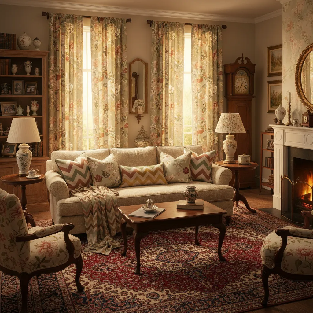 Vintage decor thrives on pattern play. Combine floral curtains with geometric-patterned throw pillows. The key is to stick within a complementary color palette to ensure the look feels cohesive rather than chaotic.