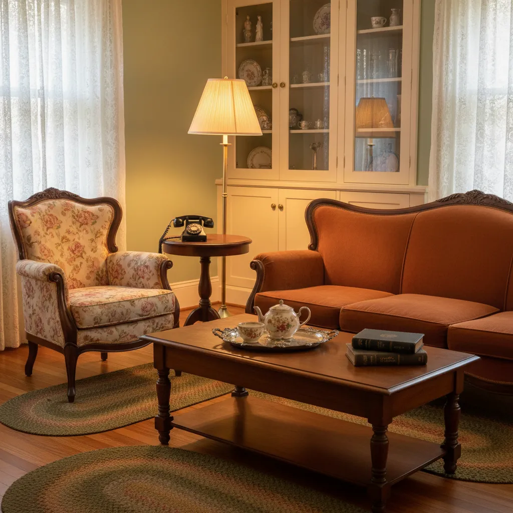 Don’t be afraid to combine different wood finishes. A dark mahogany side table can coexist beautifully with a lighter oak coffee table. This mix-and-match approach adds depth and a collected-over-time feeling that is essential to vintage home decor.