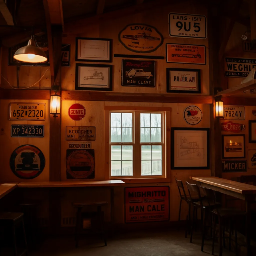 Personalize the walls with vintage metal signs, old license plates, or framed blueprints. These items tell a story and break up large expanses of wall. Look for items that reflect your personal history or interests, rather than generic store-bought decor.