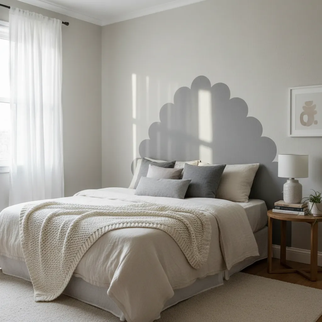 If your bedroom is small, skip the bulky furniture. Paint a headboard shape—rectangular, arched, or scalloped—directly onto the wall behind your bed. It saves space and anchors the room perfectly.