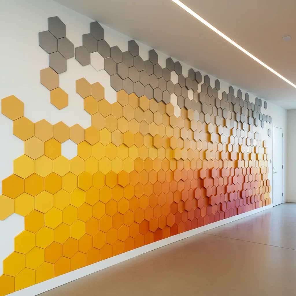 Using a stencil or careful taping, create a honeycomb pattern. You don’t need to cover the whole wall; a cascading cluster of hexagons fading out towards the ceiling creates a modern, digital-meets-organic vibe.