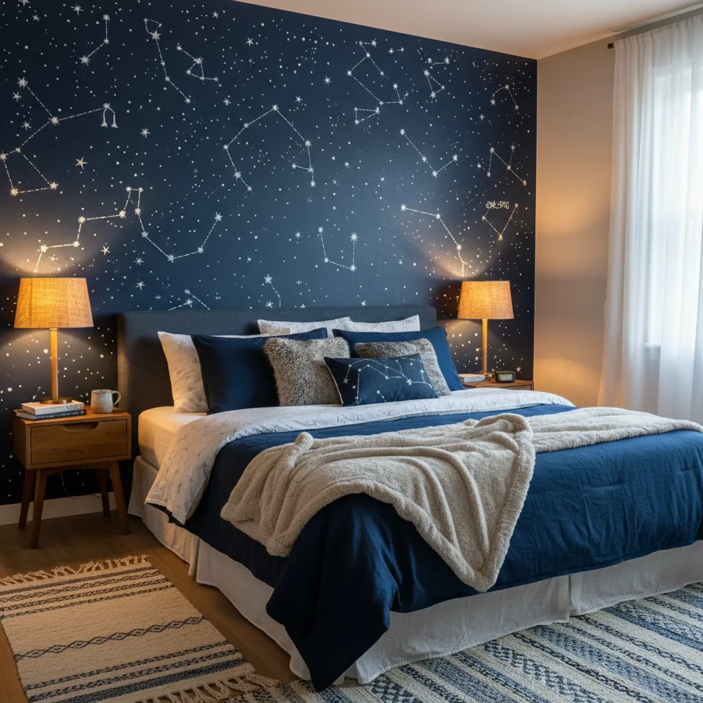 Paint a wall in a deep, moody navy or charcoal. Then, splatter white or gold paint to create stars, or hand-paint specific constellations that have meaning to you. It’s a magical backdrop for a bedroom.