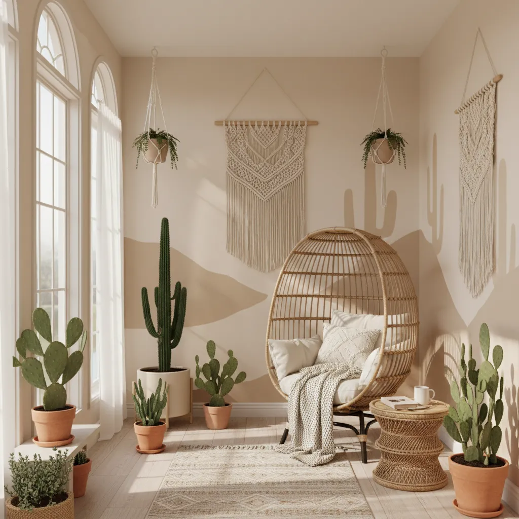 For a fun, boho vibe, paint simple cactus shapes against a sandy beige background. This theme is incredibly popular and adds a quirky, warm personality to a guest room or sunroom.