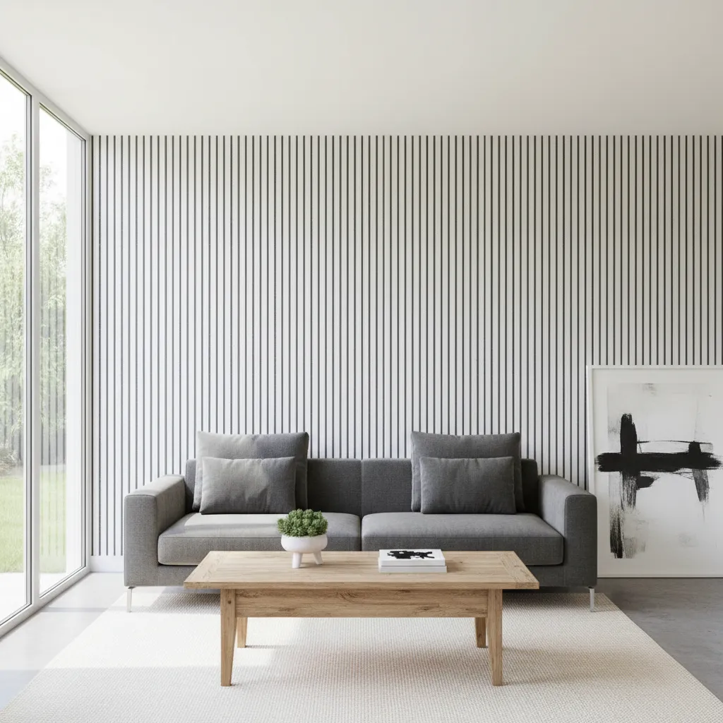 Sometimes less is more. A simple mural consisting of thin, hand-painted vertical or horizontal lines in a contrasting color can add texture without overwhelming the space. It mimics the look of expensive wallpaper for a fraction of the cost.