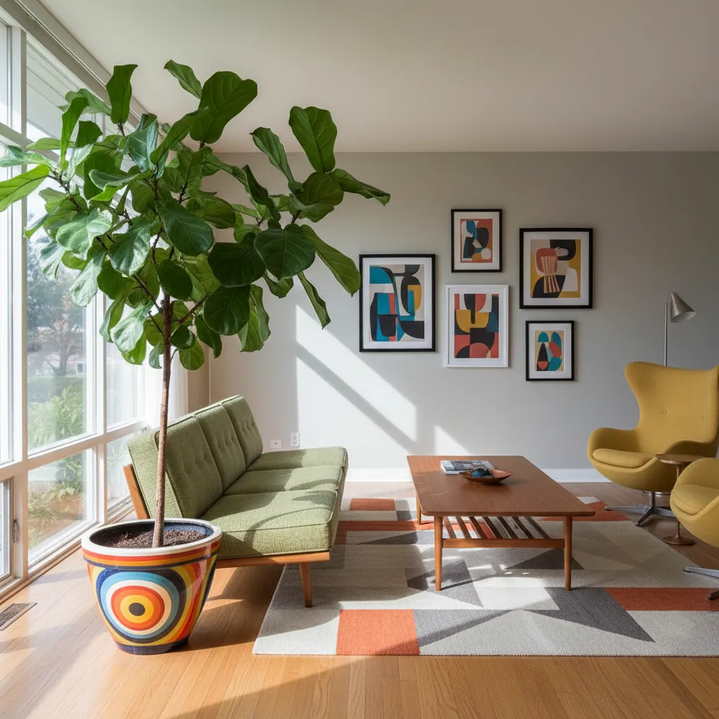 Place a large Fiddle Leaf Fig in a colorful ceramic planter in the corner of your room. The glossy, dark green leaves provide a natural architectural element. To harmonize this with a calming palette, check out Sage Green Living Room Ideas for ways to layer different verdant tones for a tranquil, nature-inspired retreat.