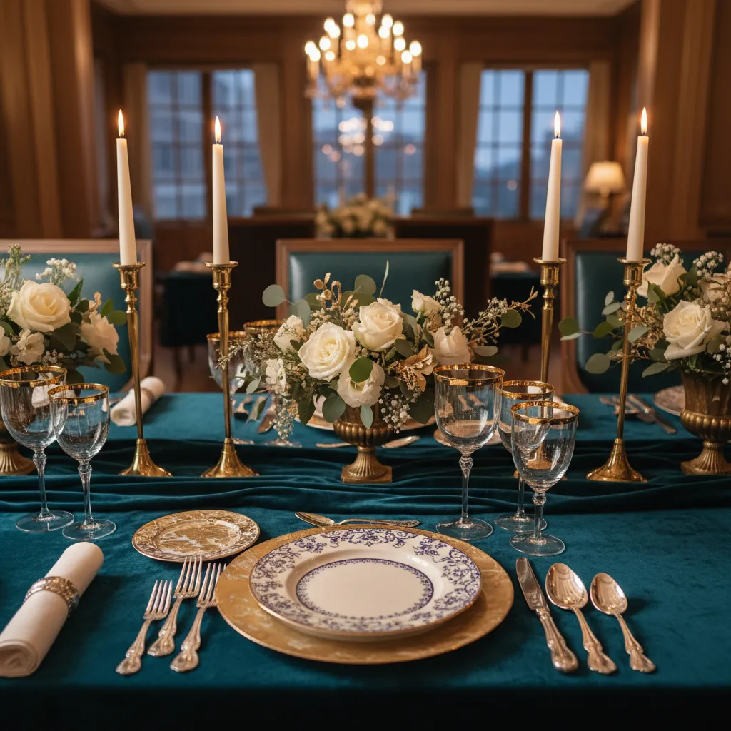 Add a touch of glamour with metallic elements like gold-rimmed glasses, brass candlesticks, or silver flatware. Metallics catch the light beautifully and elevate the overall aesthetic.