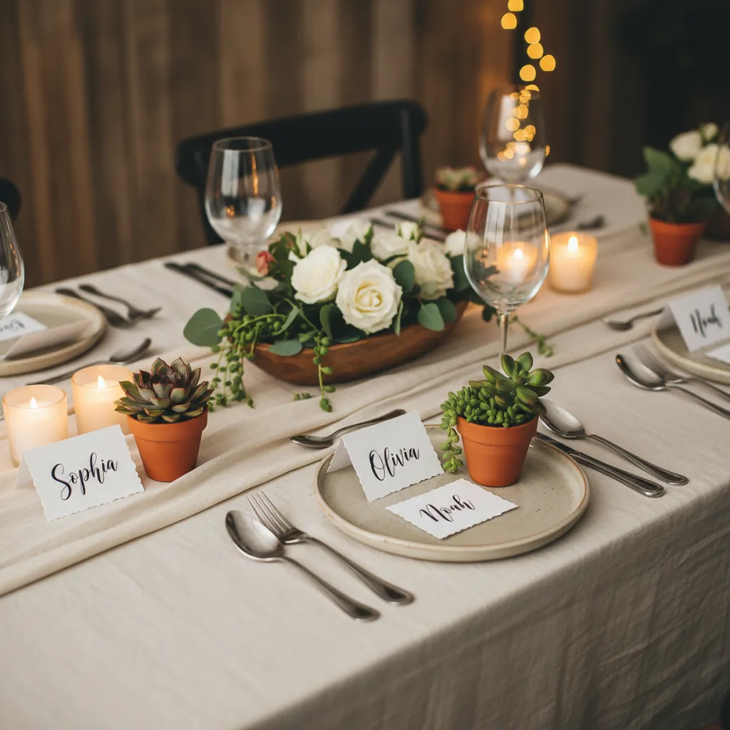 Make your guests feel special with personalized place cards or small tokens like mini succulents or handwritten notes. This thoughtful touch adds charm and makes any gathering memorable.