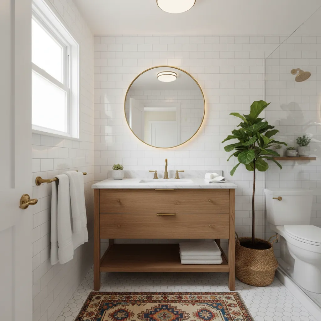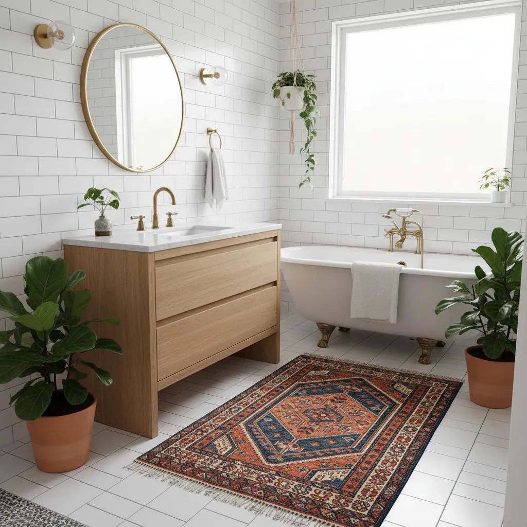 A soft rug underfoot can make a world of difference. Choose a runner or bath mat with a subtle pattern or a rich texture. A vintage-inspired Turkish rug or a simple woven jute rug can add a layer of color, pattern, and softness. This is also a great opportunity to explore different Inspiring Bathroom Flooring Ideas without committing to a full tile replacement.