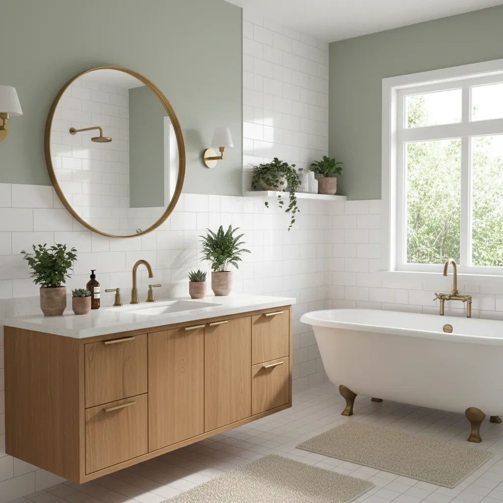 If your bathroom isn’t tiled from floor to ceiling, you have a perfect opportunity to add color. Paint the untiled walls in a soft, soothing shade like a warm greige, a pale sage green, or a dusky blue. Even painting just the ceiling can add an unexpected and sophisticated element of design. While white is your base, a splash of color can be a game-changer, much like in these Stylish Green Tile Bathroom Ideas.