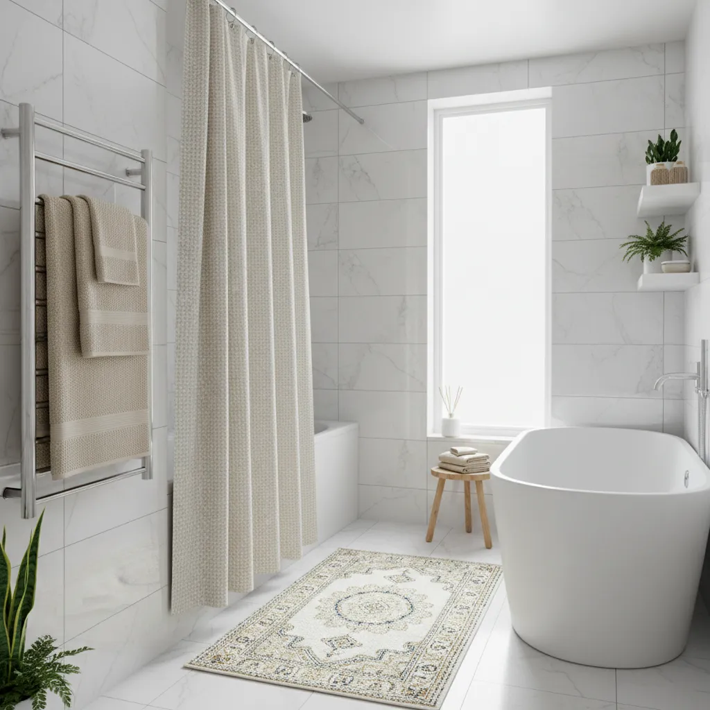 Don’t underestimate the power of soft textiles. Invest in high-quality, fluffy towels in a neutral shade like beige, gray, or even a muted color. A plush waffle-weave or Turkish cotton shower curtain can also add significant texture and softness to the room. These elements make the space feel more like a spa and less like a laboratory.