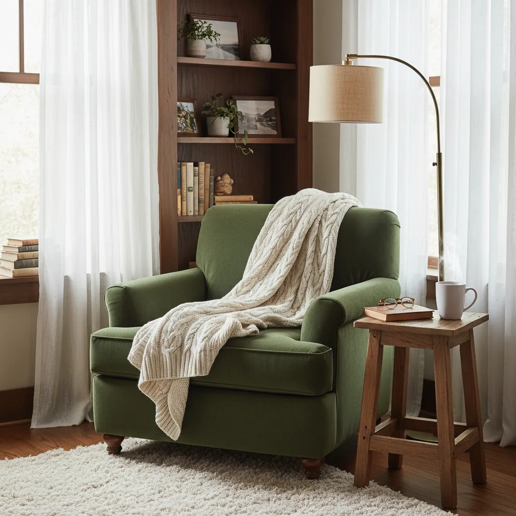 You don’t need a library. A comfortable chair, a good reading lamp, a small side table for tea, and a warm throw are all you need. Position this nook near a window to catch the limited daylight, or in a quiet corner away from the TV. This specific home decor adjustment signals to your brain that it’s okay to rest.