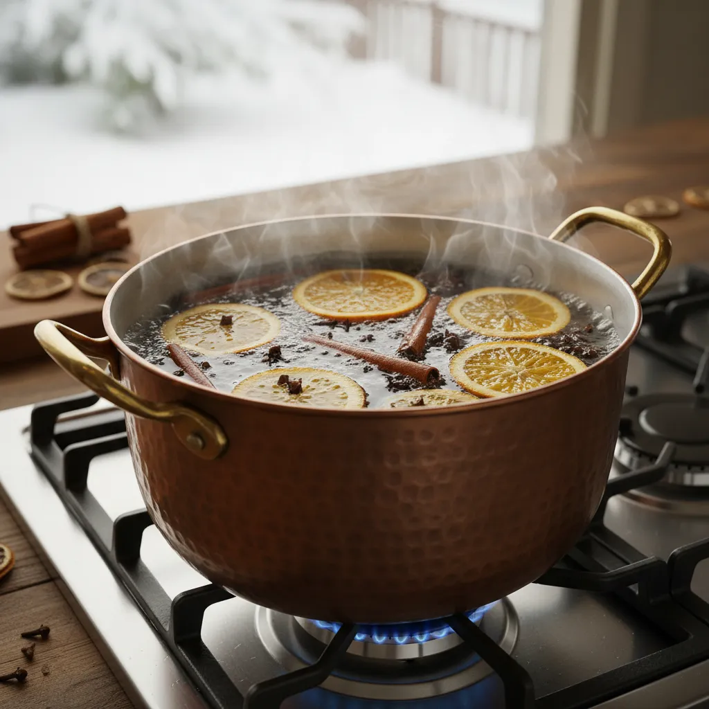 Practical Tip: If you have a fireplace, burn aromatic wood like hickory. If not, a stovetop simmer pot with orange slices, cloves, and cinnamon sticks is a natural, low-cost alternative to expensive candles.